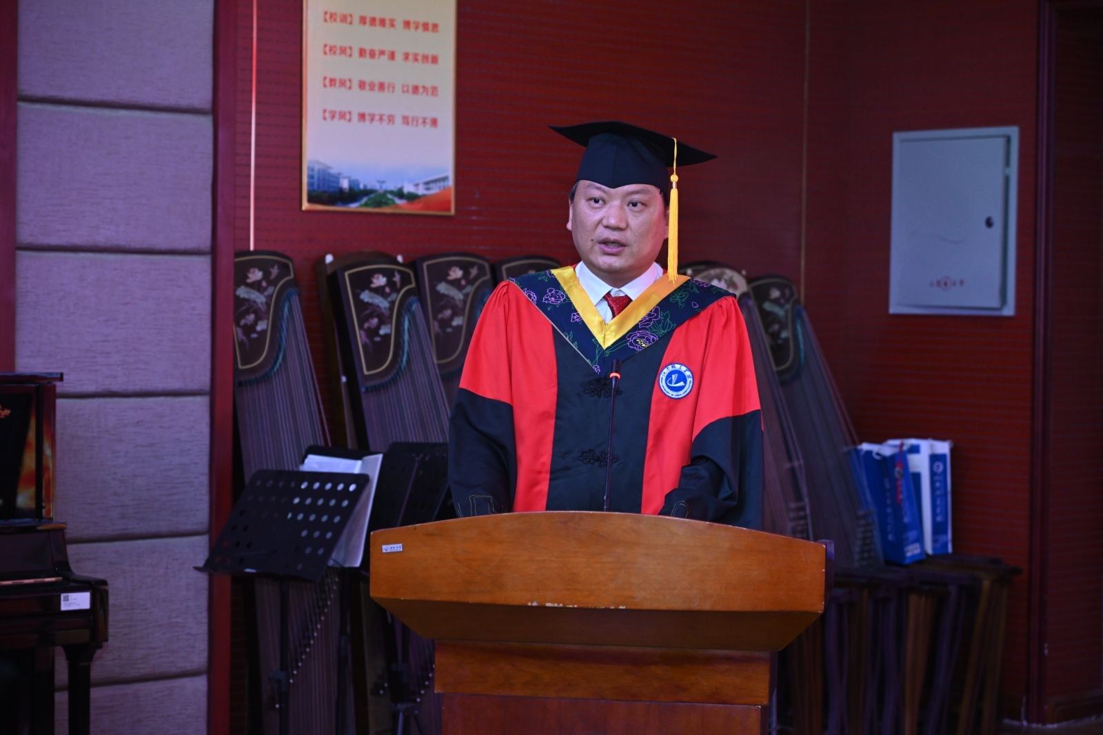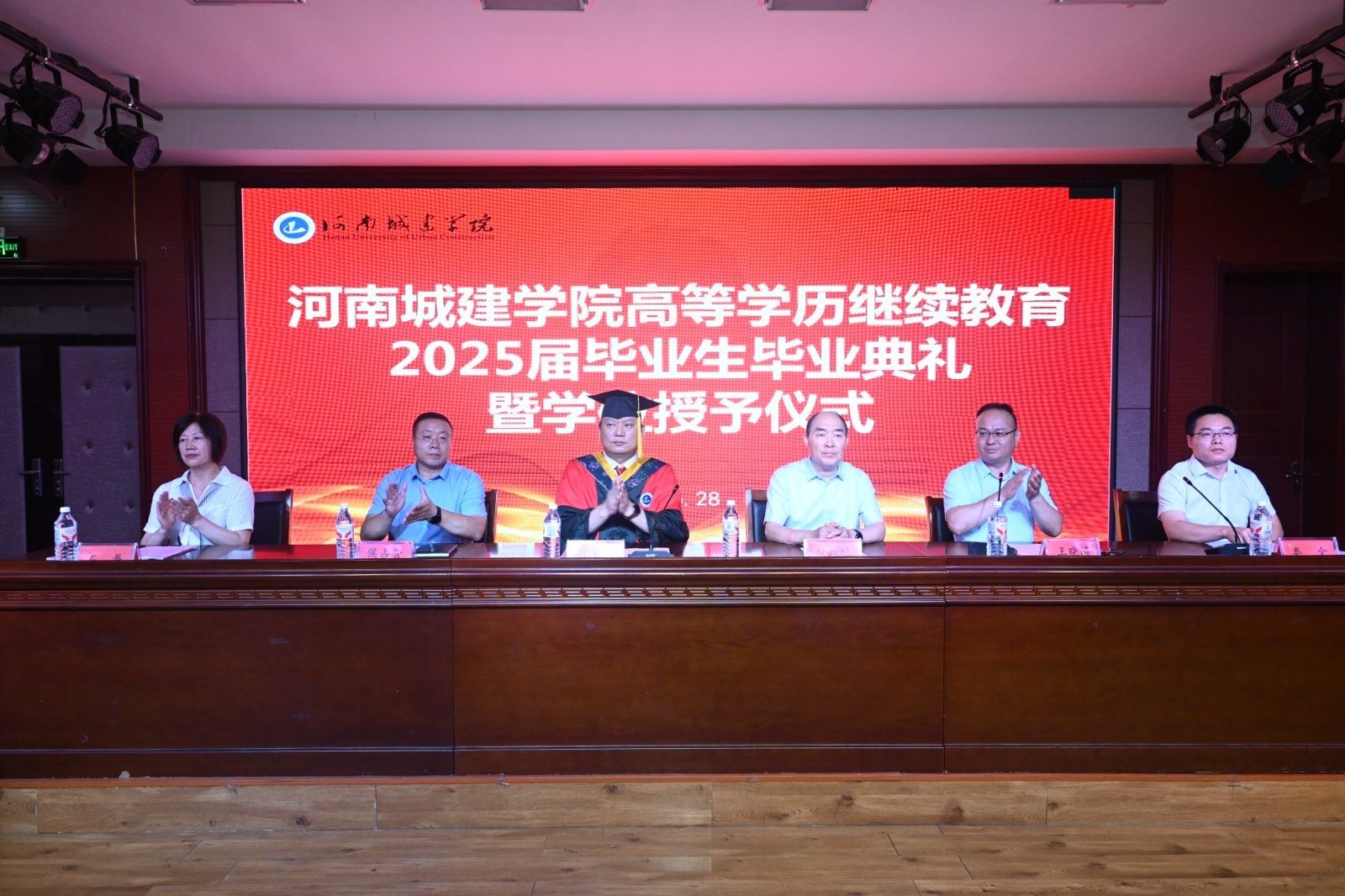 在热烈的掌声中,孙玉周代表学校发表致辞,他向2025届全体高等学历继续教育毕业生顺利完成学业表示最热烈的祝贺。孙玉周对毕业生提出四点希望:一是“志存高远”,树立远大的理想和抱负,立为国奉献之志,树为民服务之愿,以更加饱满的精神,去创造骄人的业绩。二是“学习以恒”,保持对知识的渴望和学习的热情,不断更新知识结构,提升专业技能,勇于挑战,在各自的领域中阔步前行,成为终身学习的践行者。三是“做事以敬”,对每一项工作都要心存敬畏,不以善小而不为,不以恶小而为之,要以高度负责的态度来做好每一件事情。四是“待人以诚”,诚信为做人之本,以守信为立业之基,老实做人,踏实做事,做到干一行、爱一行、精一行,在不懈的努力和进步中去实现自己的梦想。