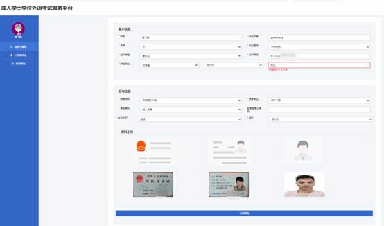 2、在填报页面,选择填写相应信息,上传相应照片后点击《立即报名》按钮。