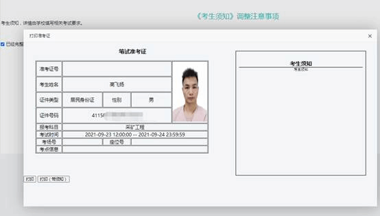 当学生填报的信息被审核,系统短信会提示是否通过审核,审核通过再次登录进入打印准考证页面、审核不通过考生可登录并修改报考信息。