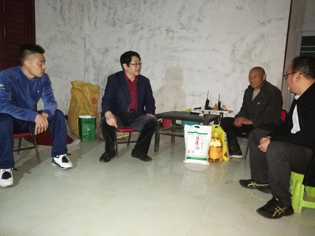 陈松涛在驻村干部的陪同下,夜访帮扶对象老张,嘘寒问暖,了解最近生活生产和脱贫进展情况,并送去了食品和衣物等慰问品,鼓励他不要满足、止步于脱贫,要乘势而上,早日实现小康生活。期间他听取了驻村干部的工作汇报,深入调研村里贫困户脱贫摘帽情况和村里最新的发展情况。他对驻村工作组的工作给予充分的肯定,并勉励他们要进一步增强责任意识、忧患意识和服务意识,察民情、听民声、重民意、解民忧,积极为百姓办好事、办实事。