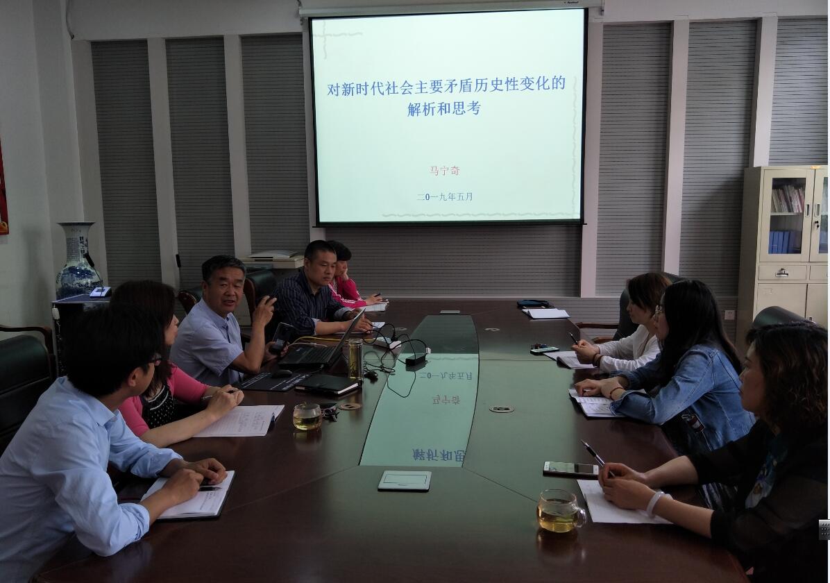 马宁奇从“对新时代我国主要矛盾历史性变化的解析”“一个时期的主要矛盾决定着一个时期的工作重点”“主要矛盾的变化对我校当前重点工作的思考”“主要矛盾的变化对我院当前重点工作的思考”等四个方面,进行了全面阐释。