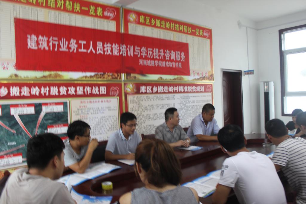 为提升建筑行业人员技术技能水平和学历层次,助力脱贫攻坚事业,有效服务当地经济社会发展和产业结构转型升级,yl23455永利集团于2017年8月1日深入我校帮扶村鲁山县库区乡搬走岭村开展建筑行业人员技能培训与学历提升咨询服务活动。