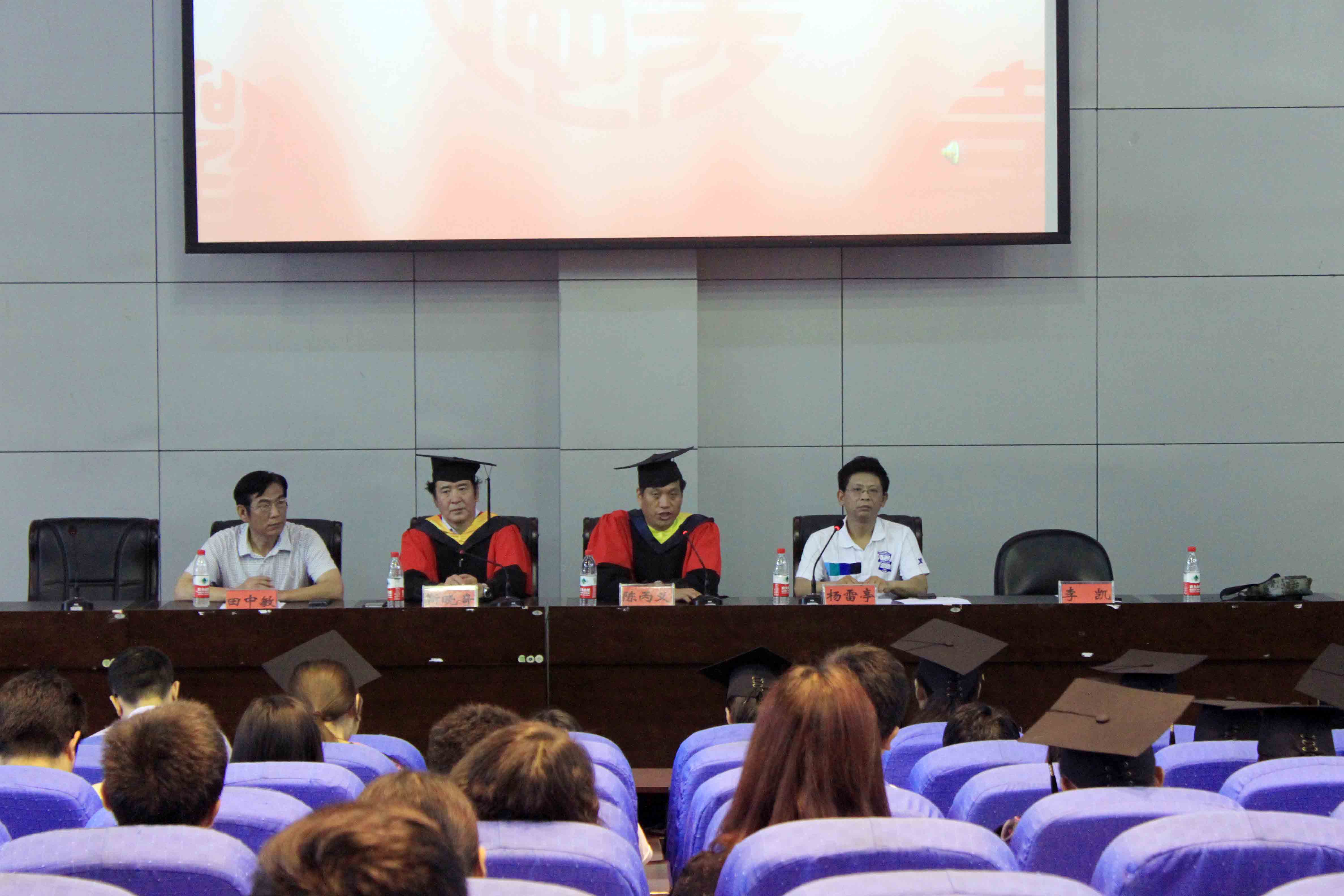 毕业典礼上,靳晓奇代表学院讲话,田中敏、李凯 分别宣读了《关于授予刘金锁等334 名毕业生学士学位的决定》、《关于表彰2015届成人教育优秀毕业生的决定》、《关于准予2015届兰洋洋等2885名成人学生毕业的决定》,陈丙义等向优秀毕业生代表、毕业生代表颁发了荣誉证书和毕业证书。毕业生代表刘金锁、环境与市政工程学院教师武晓刚分别代表2015届毕业生和教师发言。
