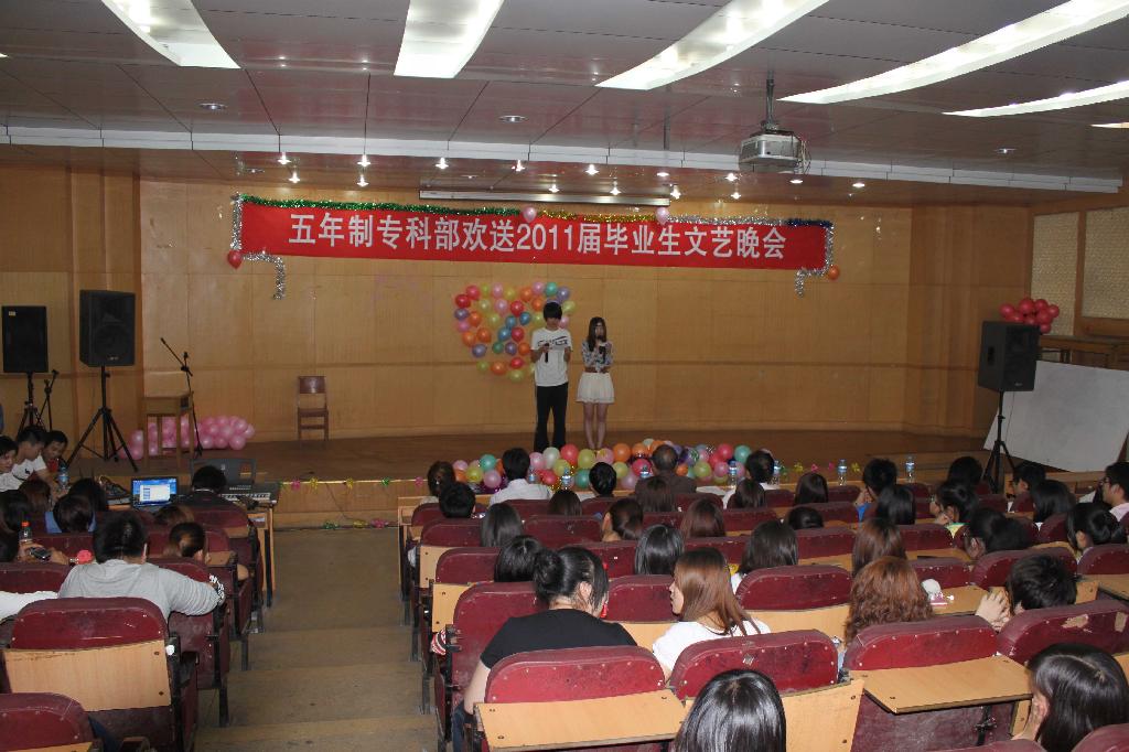 5月23日晚,五年制专科部举办了2011届送毕业生晚会,yl23455永利集团副院长李高平,该院团总支、学工办负责老师、各年级辅导员和近200名毕业生观看了晚会。
