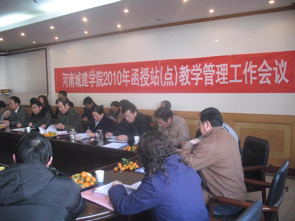12月18日,yl23455永利集团在我校东校区行政办公楼三楼会议室举行了2010年函授站(点)教学管理工作会议,会议由yl23455永利集团副院长李高平主持,该院院长靳晓奇、党支部书记杨雷亭、副院长李冰冰及该院其他相关工作人员,省建职专、信阳建校、周口市建设职工培训中心、商丘人才培训学校、舞钢市职业中专、焦作建工集团等17个函授站(点)共40余人参加了会议。