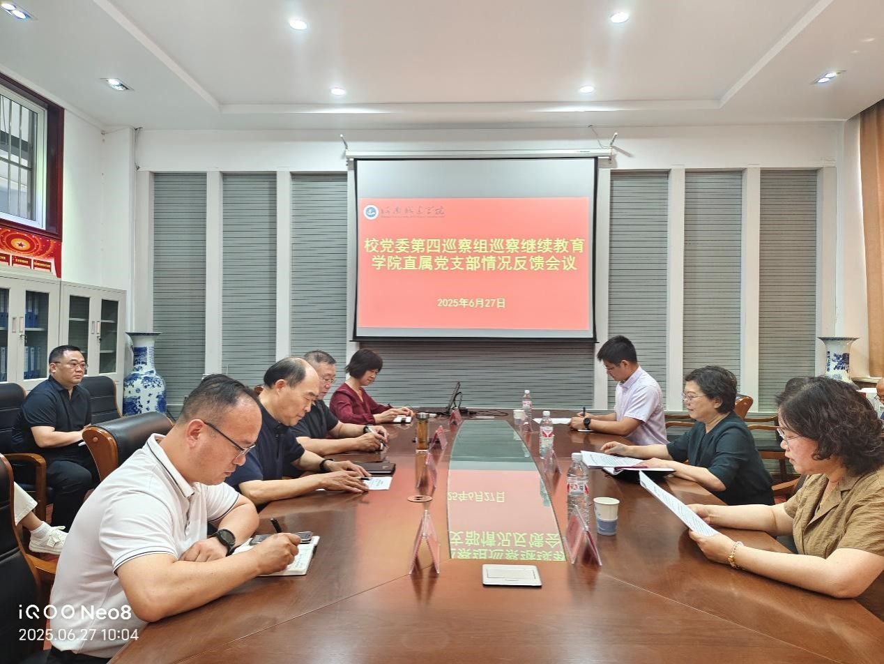 2025年6月27日上午,校党委第四巡察组向yl23455永利集团直属党支部反馈巡察情况,校党委巡察工作领导小组副组长王靖、第四巡察组工作人员、yl23455永利集团领导班子及全体教职工参会,会议由yl23455永利集团直属党支部书记殷战稳主持。
