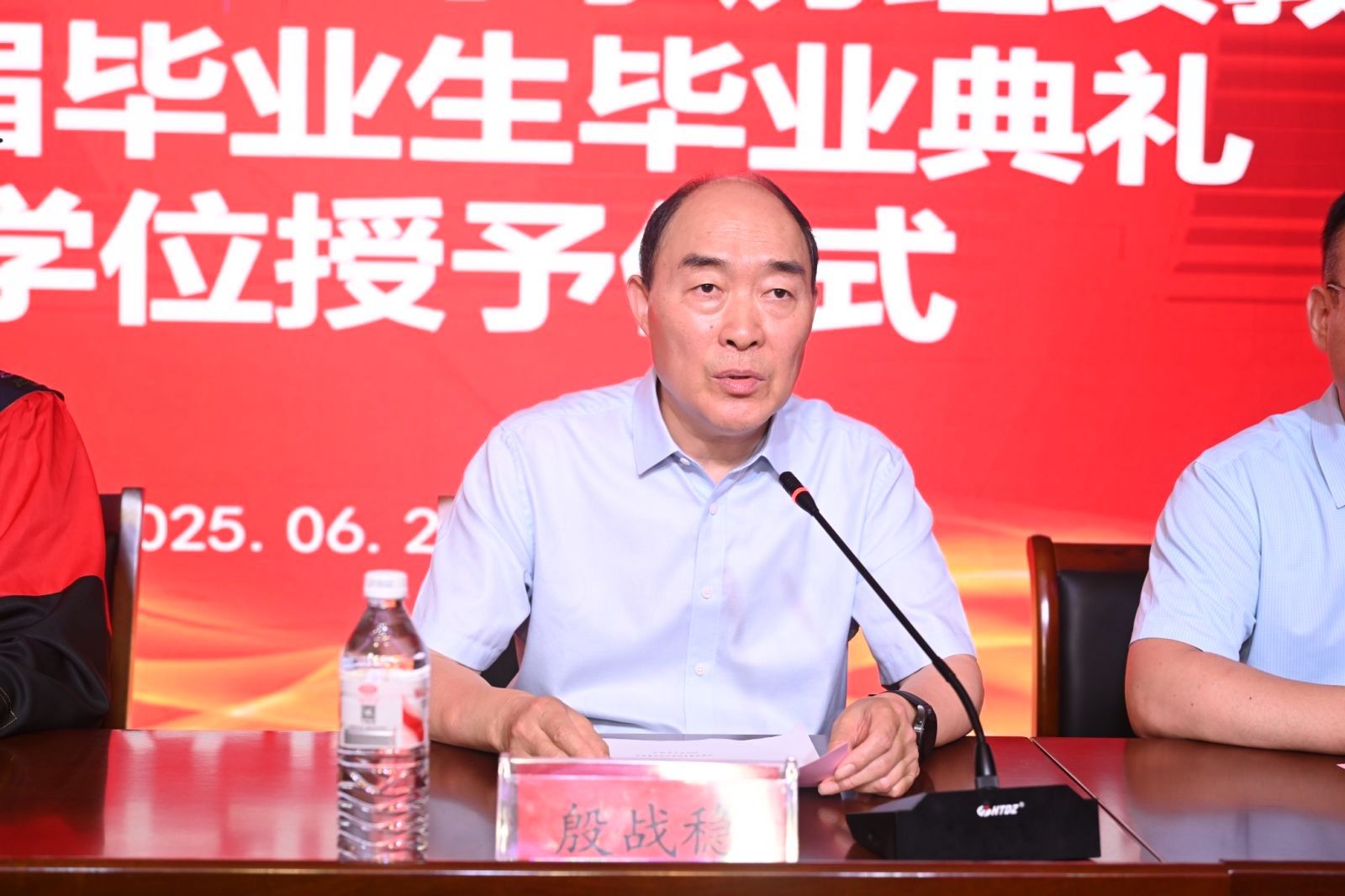 在热烈的掌声中,孙玉周代表学校发表致辞,他向2025届全体高等学历继续教育毕业生顺利完成学业表示最热烈的祝贺。孙玉周对毕业生提出四点希望:一是“志存高远”,树立远大的理想和抱负,立为国奉献之志,树为民服务之愿,以更加饱满的精神,去创造骄人的业绩。二是“学习以恒”,保持对知识的渴望和学习的热情,不断更新知识结构,提升专业技能,勇于挑战,在各自的领域中阔步前行,成为终身学习的践行者。三是“做事以敬”,对每一项工作都要心存敬畏,不以善小而不为,不以恶小而为之,要以高度负责的态度来做好每一件事情。四是“待人以诚”,诚信为做人之本,以守信为立业之基,老实做人,踏实做事,做到干一行、爱一行、精一行,在不懈的努力和进步中去实现自己的梦想。