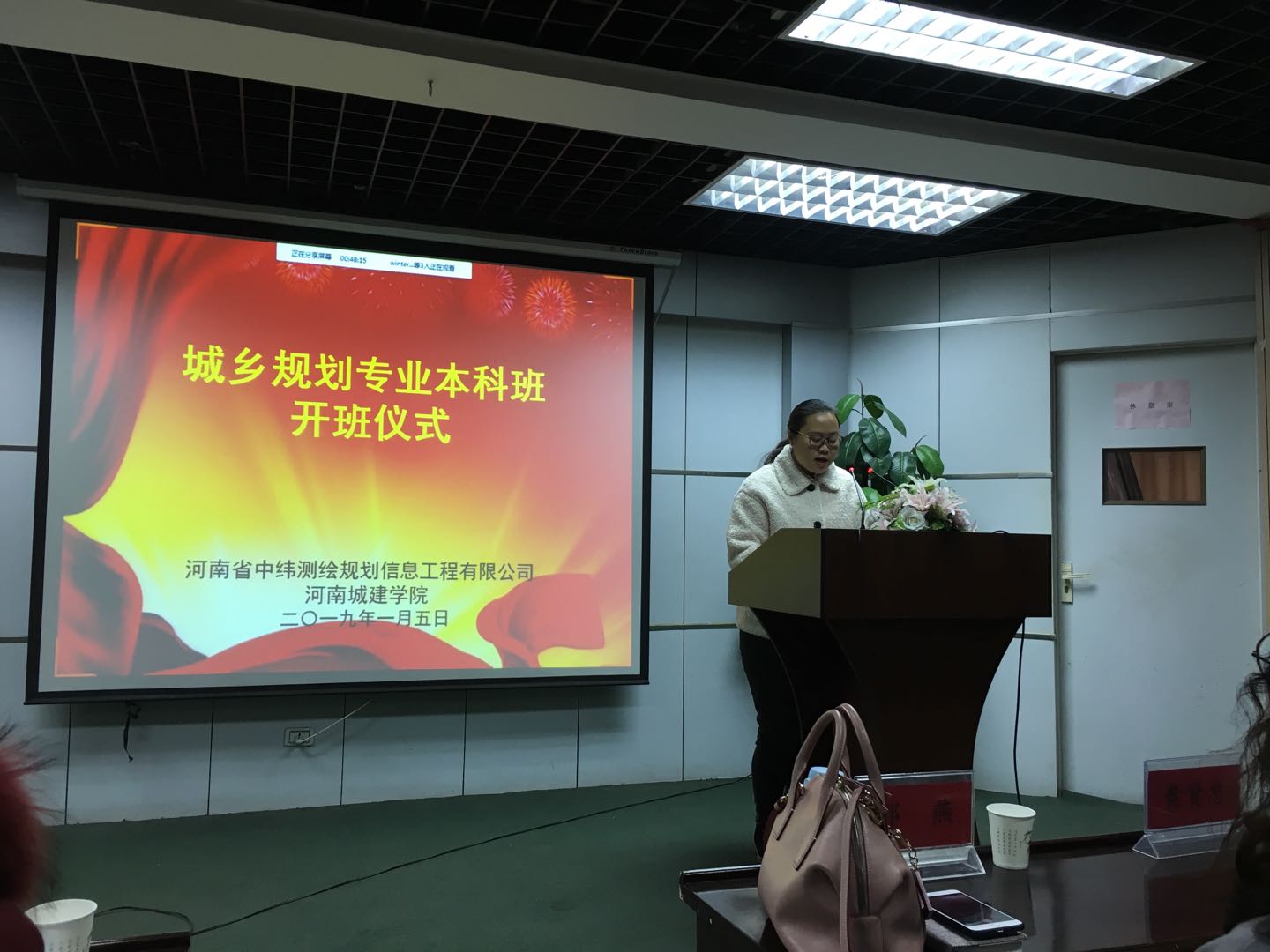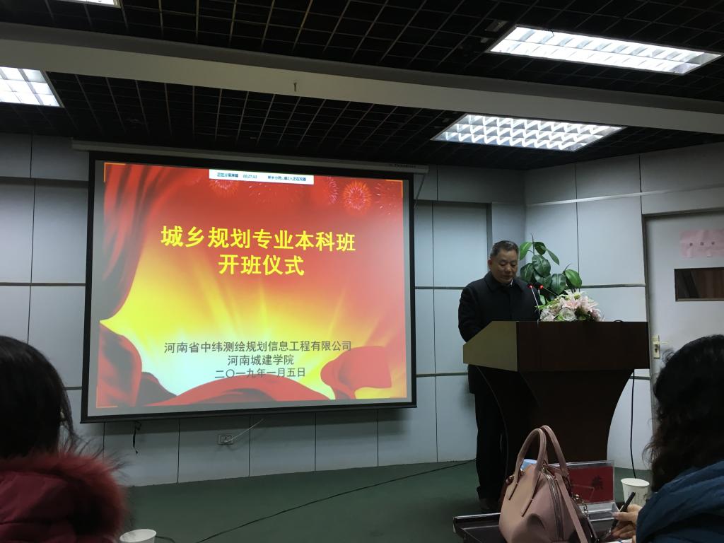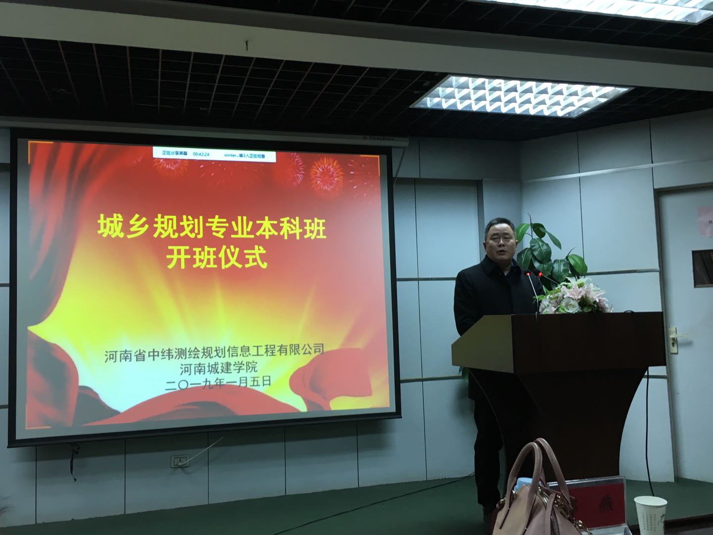 1月5日上午,在焦作中纬公司会议室,我校与河南省中纬测绘规划信息工程有限公司举行“城乡规划专业本科班开班仪式”。中纬公司董事长黄贤忠、副总经理田德林、邓波、张红方等公司高管出席开班仪式,我校yl23455永利集团书记樊铮钰、培训部主任石磊、郑金梅,建筑与城市规划学院院长邢燕、副院长郭汝、部门相关负责人以及30余名合作班学员参加会议。会议由中纬公司副总经理张红方主持。