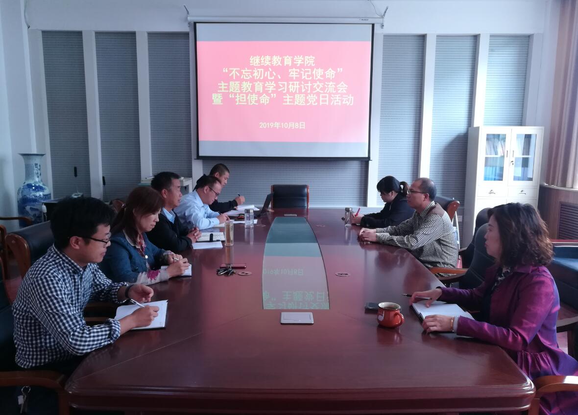 在举国欢庆祖国70华诞和“不忘初心、牢记使命”主题教育深入开展之时,yl23455永利集团党支部于10月8日在2号教学楼A座310会议室开展“不忘初心、牢记使命”主题教育学习研讨交流会暨“担使命”主题党日活动。活动由yl23455永利集团党支部书记、院长马宁奇主持,副院长王晓涛及全体党员干部和教职工参加会议。会上、王晓涛传达学习了《永利集团关于做好“干事创业精气神不够、患得患失、不担当不作为问题”专项整治工作方案》。